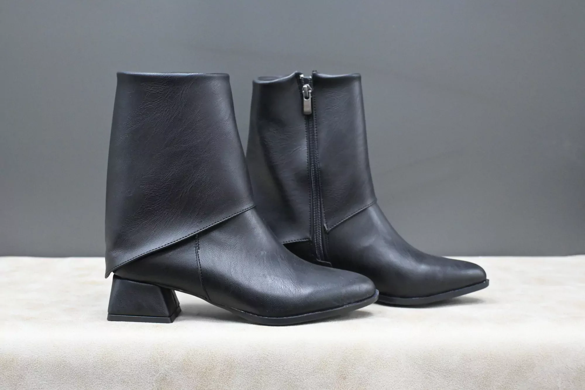 Hico Shoes Kadın Körüklü Topuklu Fermuarlı Deri Kısa Çizme